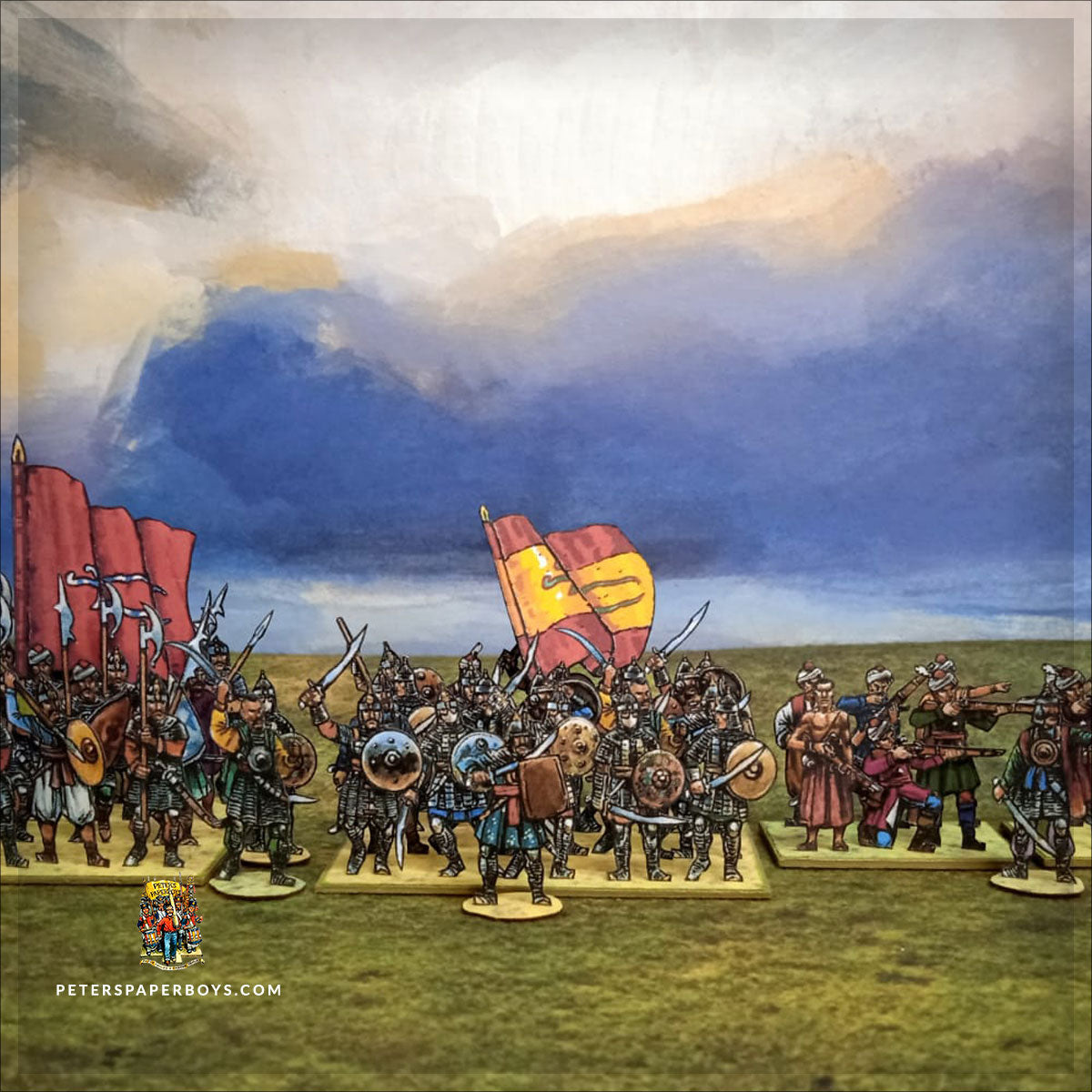 The Armies are laid out on a A4 Format that must be printed with "Fit to Page" setting on your printer.
